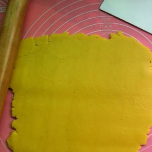 黄油软化 加糖粉打发 分几次加入蛋液打匀后 筛入中粉和低粉 用刮刀拌匀后 再用手牛成团 将此团用保鲜膜包好 放入冰箱冷藏20分钟