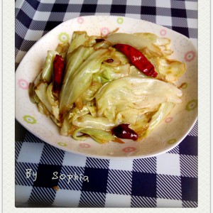 大火下入包菜滑炒均匀,倒入适量生抽、少量醋,调入盐翻炒。