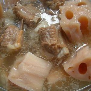 将汆烫后的排骨和藕片一通放入清水锅中,大火烧开后改小火炖2小时,起锅前先放入小油菜煮2分钟,然后再放入少许盐即可