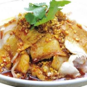 淋上拌匀的蒜泥、白糖、食醋、酱油、辣椒油即可。
