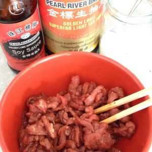 牛肉切丝酱油和盐拌匀(生抽可以不加,待会儿用)