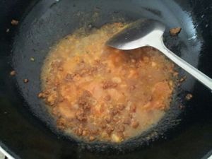待油温热的时候倒入肉糜~