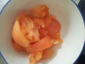 番茄切小块~似乎我切的有些大?