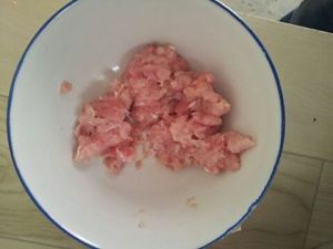 先将肉切碎,最好剁成肉糜