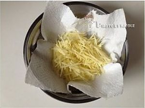 土豆丝捞出,用厨房纸吸干水分;
