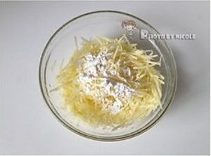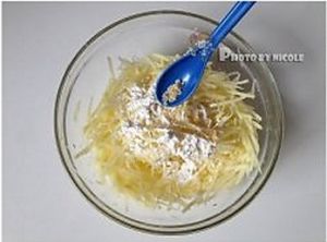 去除表面水分的土豆丝放入碗中,加入适量面粉;