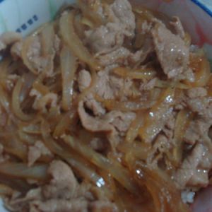 锅加底油~加入洋葱爆香~加花椒盐~蚝油~鸡粉~酱油~糖少许~白胡椒粉~盐少许~加水~调好口后~稍微炖一下~洋葱回软后~用水淀粉勾薄芡~把牛肉片加入关火~翻匀淋香油~浇在米饭上!~简单美味!