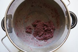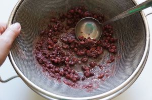 把豆子滤水(水保留),放入淘箩里,下面放一个大锅,用勺子碾磨红豆,豆沙就会流入下面的锅中;