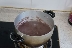 上火熬制,中小火,开盖以便水气散发,时间15-20分钟,怎么判断豆沙是否好了呢?当锅中的豆沙 开始向往爆沙的时候,就是九分好了,再煮上一两分钟即可关火;