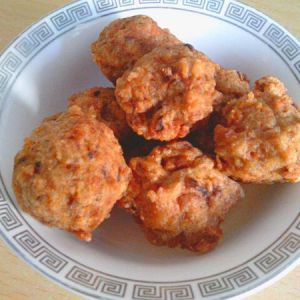 锅倒油烧热,用汤匙挖一成一个个肉团,放入油锅炸,先用中火炸3分钟,改大火炸一分钟金黄色即可捞出。出锅即食,也可红烧或做汤,我一次做的吃不了就放冰箱冷冻,随吃随拿出来蒸,炖都很好吃!!!,
