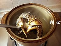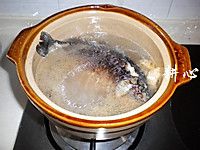 将炒锅中的鲫鱼和汤汁倒入砂锅中。