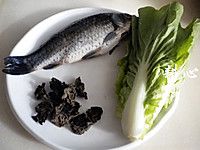 1食材:鲫鱼、干木耳和小白菜。