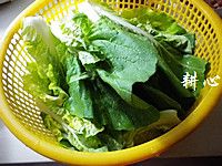 小白菜用清水浸泡20分钟,然后择洗干净,沥干,待用。