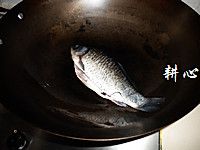 将择洗干净的鲫鱼放入炒锅中。