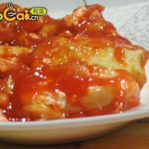 炒酱,锅中留一点底油,一点就行了,倒入番茄酱,多倒点没有事。倒白醋,加点糖。为什么倒白醋我也不太清楚,可能是调味吧。