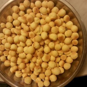 将面团揉搓成黄豆大小的挤子,放入烤箱上下温度180°,10分钟烤。