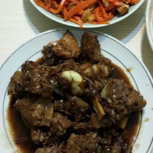 熟排骨捞出,起锅,少许植物油,下葱姜蒜煸炒,蒜变色,倒入调味汁,起泡后,马上加排骨,翻炒均匀加入一点儿水淀粉,出锅!
