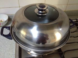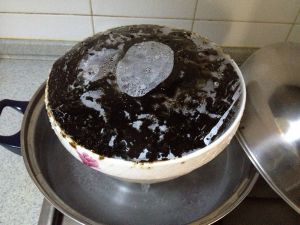 上锅咯,水沸后上蒸,先大火15分钟,再小火90分钟。先在上锅前加上,之后就不用加了。