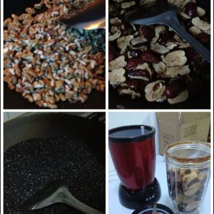 红枣洗净祛核,核桃仁可以买碎的,便宜很多,反正也是要打碎,这次买的还好,不是很碎。