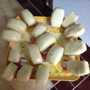 馒头要多揉,才够精道,然后切成长方形,放入锅中蒸熟(馒头无需切太大,因为蒸熟之后会变大),图为出锅的馒头