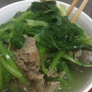 排骨熟了之后把洗好的小白菜放里放盐和鸡精