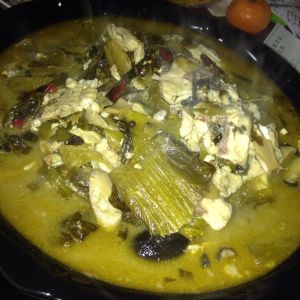 在将香菇和杏鲍菇下锅翻炒,然后添水,没过酸菜1公分即可(高汤更佳)水沸之后将鱼头和鱼骨下锅,煮熟后将鱼片下锅,三分钟后即可出锅
