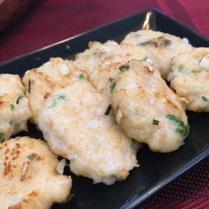 把虾泥、葱末、盐、芝麻油、面粉加入大碗用筷子搅拌