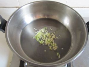 烧热锅, 放适量的油, 下入姜蒜末煸炒;