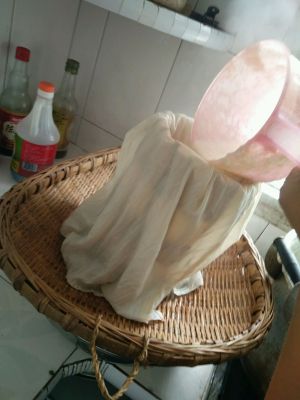 用纱布口袋过滤豆渣和豆浆