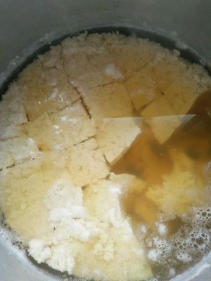 将黄豆浆加水用大锅煮沸