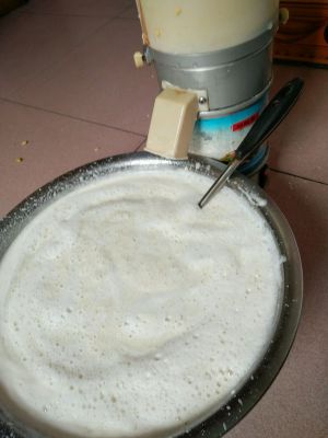 用豆花机将泡好的黄豆加水打成浆