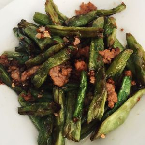 最后倒入四季豆,加入少许盐和生抽。翻炒30秒左右盛出装盘。