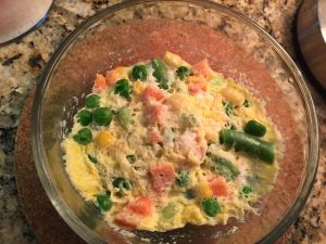 拌入混合冻菜丁,加入少许盐,搅拌使蛋液包裹住菜丁即可。