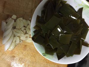海带切寸段 蒜拍碎