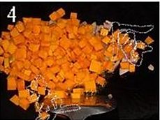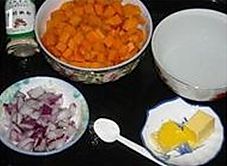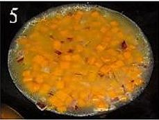 南瓜削皮,去囊,切小丁,洋葱切丁;