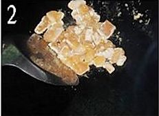 把胡萝卜丁放进锅里,煸炒至软身;