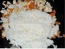 倒进米饭,翻炒均匀;