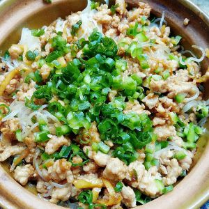 把刚刚炒好的肉末倒入锅中,盖锅煮3分钟,起锅!ok,蚂蚁上树出锅