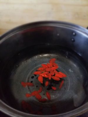 煮锅里加入水,放入洗净的枸杞一起烧开