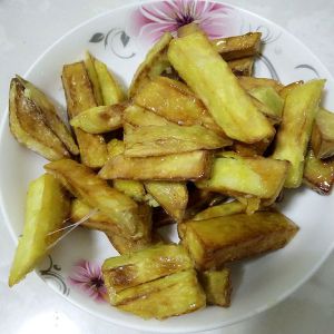 换锅。放入少许油。熬白糖。粘稠以后放入地瓜。