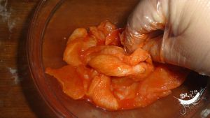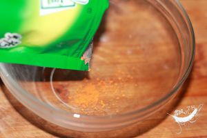 容器里倒入酷克壹佰新奥尔良烤肉料13克和水13克拌匀