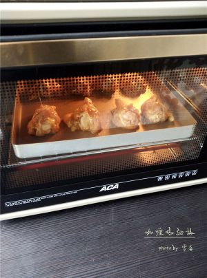 烤箱预热成功后,将烤盘放在烤箱中层,烤制30分钟左右,中途翻一次面;