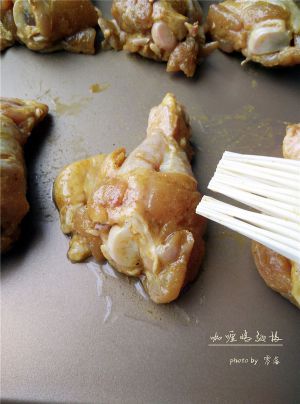 在鸡翅根表面刷一层玉米油;