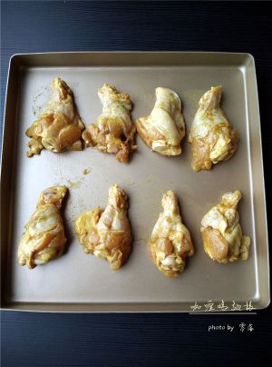 将鸡翅根摆在不粘烤盘里,如果烤盘不防粘,需垫锡纸或油纸;