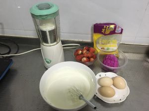 准备材料 淡奶油 鸡蛋(只用蛋黄) 红心火龙果 牛奶一袋 白糖适量