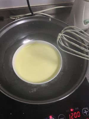 牛奶 蛋黄 白砂糖放碗里用打蛋器搅拌发白 我是隔水加热 我怕糊 在加热的过程中要不停搅拌直至变稠