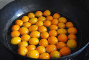 倒入金桔,盖上盖子煮沸后转小火焖煮30到40分钟
