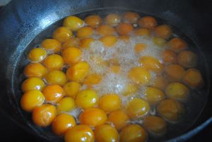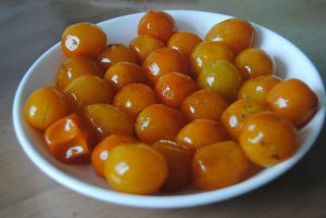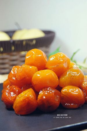用勺子沥干糖水放入碟子,入微波炉中高火微13-15分钟直到金桔表皮变得有韧性即可