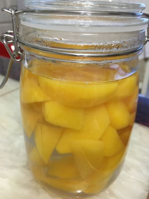 倒入密封罐,自然冷却,放置几个小时等待糖水完全侵入黄桃更好吃!或放入冰箱冷藏,味道棒棒哒!