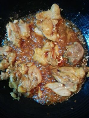 锅里倒入半碗水,加入适量的蜂蜜(可根据个人喜好多加点),淋一些老抽调色,根据味道加入适量的生抽。等待收汁